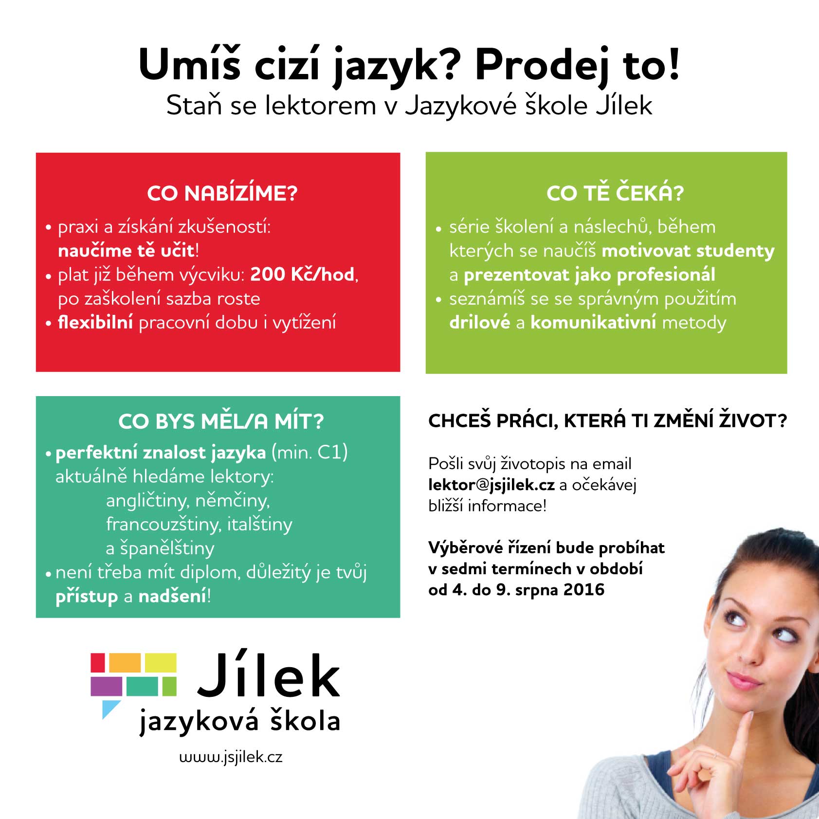 >> čti dálV Jazykové škole Jílek pohlížíme na jazykové kurzy očima studentů. Vše, co děláme, je zaměřeno na to, abyste dosáhli maximálního pokroku, cítili se příjemně a pozitivně motivováni. Jen tak může být výuka jazyka dlouhodobě efektivní a smysluplná. Díky více jak třicetileté praxi nabízíme osvědčený a komplexní systém vzdělávání postavený na propojení drilové a komunikativní metody, který zajišťuje studentům ty nejlepší výsledky. Jazykové kurzy u nás probíhají celoročně ve třech semestrech.
